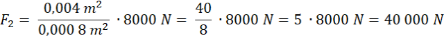 Wielkości oznaczone indeksem 1 dotyczą małego tłoka, oznaczone 2 – dużego. Po przekształceniu tej równości dostaniesz wzór na siłę F2. Jej wartość jest równa sile ciężkości działającej na to ciało. Ze wzoru na siłę ciężkości F = mg, gdzie g jest przyśpieszeniem ziemskim, po przekształceniu dostaniesz wzór na masę ciała.