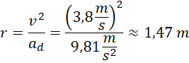 Wiedząc, że przyspieszenie dośrodkowe wynosi 9,81 m/s2, a prędkość liniowa 3,8 m/s oblicz odległość od środka karuzeli.