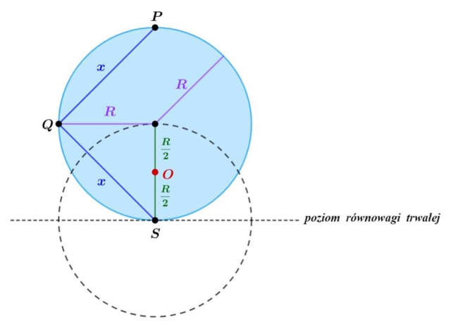 znajduje się w najniższym położeniu. Tarcza osiągnie równowagę trwałą, gdy środek jej ciężkości (środek tarczy) znajdzie się w najniższym możliwym punkcie, czyli w punkcie