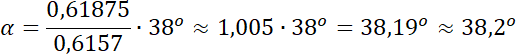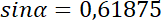 Z tablic trygonometrycznych odczytujemy najbliższy kąt dla wartości 0,61875: