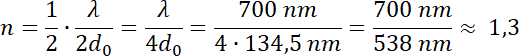 oraz wiedząc, że przy odbiciu fali od ośrodka o większym współczynniku załamania światła, faza fali zmienia się na przeciwną.