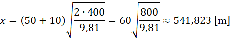 Odległość motorówki od śmigłowca to zasięg lotu wyrzuconego ciała oraz odległości, jaką pokona motorówka w czasie jego lotu.