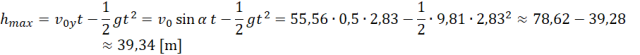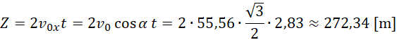 Czas lotu, wysokość i zasięg wyznaczysz, wykorzystując wzory do obliczenia konkretnych wartości. W czasie lotu wykorzystujesz składową pionową, gdzie w maksymalnej wysokości prędkość jest zerowa, a do zasięgu – składowe poziome, przy czym w ruchu poziomym piłeczka porusza się ruchem jednostajnym, zatem drogę, jaką pokona, mnożysz przez 2: czas lotu w górę oraz czas lotu w dół.