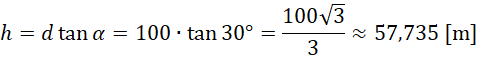 Pocisk został wystrzelony pod kątem 30 stopni do poziomu w kierunku rzutki. Odległość od miejsca wyrzutu rzutki oraz miejsca wystrzelenia pocisku to 100 metrów. Oblicz, jaka powinna być maksymalna wysokość rzutki tak, aby pocisk ją wtedy trafił.