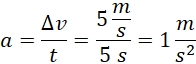 Przyspieszenie jest równe stosunkowi przyrostu prędkości do czasu, w jakim on nastąpił. Zakładamy zwrot zgodny z osią x, wynik jest dodatni, więc taki zwrot jest poprawny.