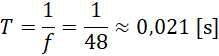Częstotliwość to liczba obrotów w jednostce czasu, natomiast okres jest odwrotnością tej liczby. Częstotliwość podajesz w hercach, a okres w sekundach.