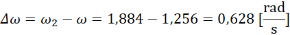 Prędkość kątową wyznaczyłeś w poprzednim podpunkcie. Analogicznie wyznaczasz drugą prędkość kątową, tym razem zmieniając liczbę obrotów w ciągu minuty. Zmiana prędkości kątowej to różnica prędkości kątowej na początku oraz tej drugiej wyliczonej.