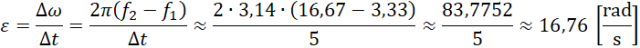 Oblicz przyspieszenie kątowe bębna, jeśli bęben ten w czasie 5 sekund zwiększył liczbę obrotów na minutę z 200 do 1000.