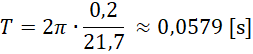 Wyznacz, jaki jest czas obrotu koła, którego 20-centymetrowy promień napędza pas z prędkością 21,7 .