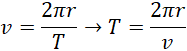 Wyznaczasz czas jednego obrotu ze wzoru na prędkość liniową.