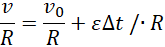 Przyspieszając, zmienia się prędkość kątowa. Jest to suma prędkości kątowej początkowej oraz iloczynu czasu, oraz przyspieszenia kątowego.