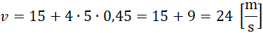 Policz, jaką prędkość uzyska samochód po 5 sekundach jazdy, jeśli najpierw jechał z prędkością 54 i zaczął przyspieszać tak, że jego koła o 0,45 m promieniu uzyskały przyspieszenie 4 .