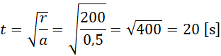 Odp. Przyspieszenie dośrodkowe będzie równe przyspieszeniu liniowemu po 20 sekundach trwania ruchu.