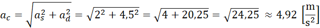 Przyspieszenie całkowite możesz wyznaczyć zatem z twierdzenia Pitagorasa.