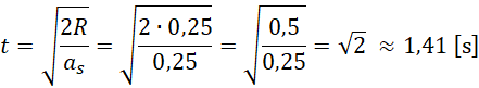 Odp. Przyspieszenie dośrodkowe będzie dwa razy większe od przyspieszenia stycznego po około 1,41 s.
