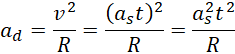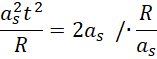 Zapisujesz sobie wzór na przyspieszenie dośrodkowe i przyrównujesz je z dwukrotną wartością przyspieszenia stycznego – takiej zależności szukasz. Z powstałego wzoru wyznaczasz czas.