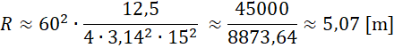 Oblicz, jaką długość ma ramię karuzeli, które w ciągu jednej minuty robi 15 okrążeń, a przyspieszenie dośrodkowe wynosi 12,5 .