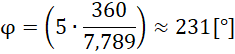 Wyznaczasz sobie ze wzorów na przyspieszenie dośrodkowe okres, czyli czas potrzebny do wykonania jednego pełnego obrotu, czyli 360º. Następnie z proporcji wyznaczasz, jaki kąt pokona kulka w czasie 5 sekund.