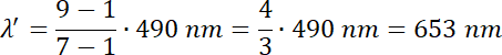 Kąt między kierunkiem pierwotnym wiązki i promienia oraz stała siatki dyfrakcyjnej dla pierwszej i drugiej długości fali są równe, więc: