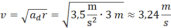 Wiedząc, że przyspieszenie dośrodkowe wynosi 3,5 m/s2, a odległość od środka obrotu 3 m oblicz szybkość liniową krzesełka karuzeli.