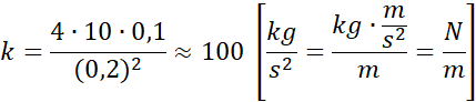 Korzystając ze wzoru na okres drgań, obliczamy współczynnik sprężystości.