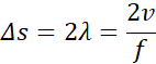 Należy obliczyć odległość między pierwszym a kolejnym wzmocnieniem usłyszanym przez obserwatora, w trakcie poruszania się na prawo od punktu A.