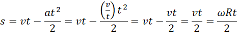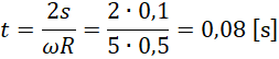 Najpierw oblicz, jaką prędkość liniową będzie miał krążek w chwili, gdy wyleci przez otwór. Będzie poruszał się po linii prostej prostopadłej do stycznej do okręgu w miejscu, w którym został uwolniony. Zatrzymując się, hamuje do prędkości zerowej. Jego ruch jest opóźniony, zatem czas poruszania się po stole możesz obliczyć ze wzoru na drogę w ruchu przyspieszonym.