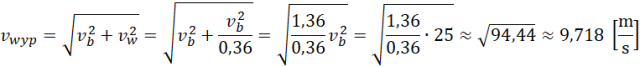 Tangens kąta wyznaczyłeś w pierwszym podpunkcie zadania. Prędkość wypadkową obliczysz, korzystając z twierdzenia Pitagorasa.