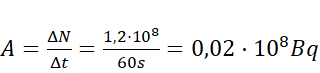 Oblicz aktywność próbki jako ilorazu jąder, które rozpadły się i czasu, w którym nastąpił rozpad. Pamiętaj, że bekerel, jednostka aktywności, określa aktywność w czasie jednej sekundy.
