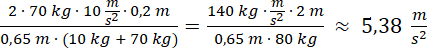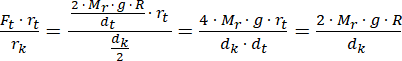 Korzystamy z warunku równowagi kołowrotu, jako przypadku dźwigni, aby obliczyć siłę działającą na przednią zębatkę (Fp), a następnie z warunku równowagi przekładni, aby wyznaczyć siłę działającą na tylną zębatkę (Ft). Na podstawie tego samego warunku możemy wyznaczyć siłę działającą na koło (Fk). Jest ona jednocześnie siłą wypadkową (Fw) wprawiającą w ruch cały układ (masa rowerzysty i roweru). Zgodnie z drugą zasadą dynamiki jest ona iloczynem masy tego układu (mu) oraz przyspieszenia (a). Dokonując przekształceń, wyznaczamy to przyspieszenie.