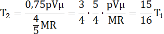 Wyznacz końcową temperaturę gazu, którego początkowa masa jest równa m, wiedząc, że gdy otwarto naczynie piąta część masy gazu „uciekła”. Przyjmij, że początkowa temperatura była równa 47°C, a wskutek wypuszczenia gazu ciśnienie zmalało o czwartą część początkowej wartości.