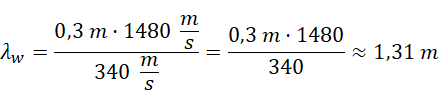 Wyznacz długość dźwięku w wodzie, jeśli jej długość w powietrzu wynosi 30 cm i która przechodzi z powietrza do wody.