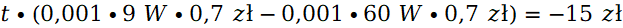 W tym zadaniu musisz obliczyć czas, po jakim czasie zwróci się koszy użytkowania droższej żarówki.