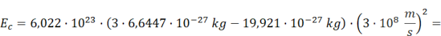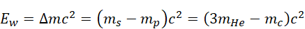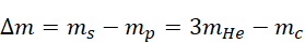 ) oblicz jako różnicę między masą składników reakcji fuzji (czyli trzy jądra helu) a masą jądra węgla (