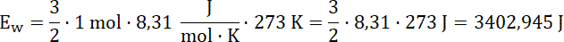 Wyznacz energię wewnętrzną 1 mola neonu, którego temperatura wynosi 0°C.