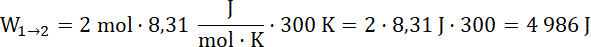 Wyznacz pracę, jaka została wykonana przez gaz podczas jego przemian termicznych, wiedząc, że parametry w stanie 1 wynoszą V1 = 125 dm3, T1 = 27°C. Gaz jest jednoatomowy, a liczba moli jest równa 2.