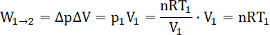 Wyznacz pracę wykonaną w każdej z przemian jako pole pod wykresem każdej z nich. Zauważ, że w przypadku przemiany 1 → 2 jest ono równe polu prostokąta, którego boki mają długości