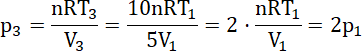 Zauważ, że skoro przemiana 2 → 3 jest izochoryczna, to objętość w stanie 3 jest taka sama jak w stanie 2
