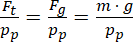 W podnośniku hydraulicznym zastosowano prawo Pascala, mówiące, że ciśnienie (pm) wywierane przez pompę sprężające jest równe ciśnieniu wywieranemu na tłok (pd), gdzie ciśnienie jest stosunkiem działającej siły (F) do pola powierzchni tłoka (St). Działająca siła (Ft) jest równa ciężarowi (Fg) podnoszonego samochodu (musi ją zrównoważyć). Dokonując przekształceń, wyznaczamy pole powierzchni tłoka.