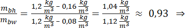 Aby obliczyć, jak zmieniła się nośność balonu, obliczamy stosunek masy balonu, który zostanie uniesiony dzięki sile wyporu zawartego w nim gazu – odpowiednio helu i wodoru.