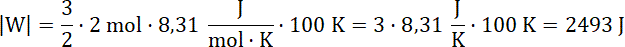 Wyznaczamy pracę gazu w przemianie 2 → 3: