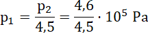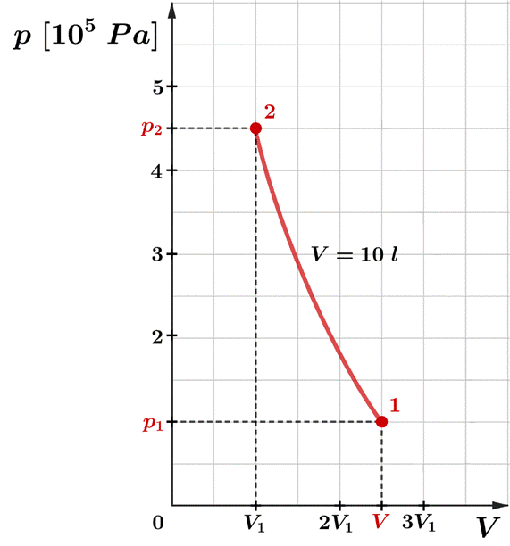 jest 4,5 razy mniejsze od wartości ciśnienia w stanie 2. Natomiast w stanie 2 objętość jest równa