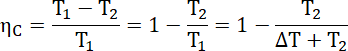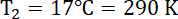 Wyznacz sprawność silniki Carnota, wiedząc, że temperatury chłodnicy wynosi t2 = 17°C, a różnica między temperaturami źródła i chłodnicy jest równa ∆t = 145°C