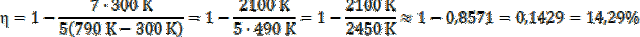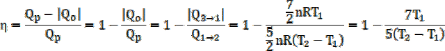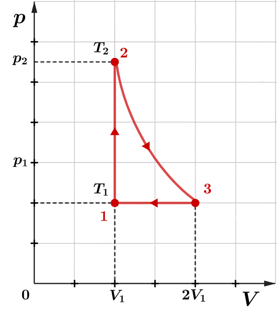 – ciepło oddane. Zauważ, że ciepłem pobranym jest ciepło wymienionym z otoczeniem podczas izochorycznego ogrzewania, ponieważ temperatura wzrasta, a oddanym – podczas izobarycznego sprężania – wówczas maleje objętość, więc także i temperatura. W przypadku przemiany adiabatycznej wymiana ciepła nie następuje.