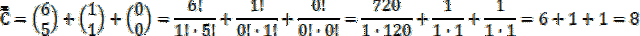 Do pierwszej pozycji wkładamy pięć kulek z sześciu możliwych, do drugiej – jedną kulki z jednej pozostałej i do trzeciej – zero z zeru pozostałych kulek.