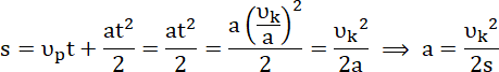 Wyraź przyspieszenie za pomocą pokonanej drogi oraz osiągniętej szybkości końcowej