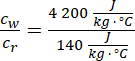 W tablicy na stronie 322. największe ciepło właściwe posiada woda, a najmniejsze – rtęć. Porównując oba ciepła, liczymy ich stosunek.