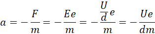 Maksymalna wartość napięcia pomiędzy płytkami występuje w przypadku, gdy elektron doleci do okładki ujemnej i w chwili końcowej jego prędkość wynosi 0. Wykorzystujemy wzory na drogę i przyspieszenie w ruchu jednostajnie opóźnionym, jaki występuje na kierunku ruchu elektronu. Na ich podstawie otrzymujemy wzór na drogę, jaką przebył elektron. Następnie wyznaczamy zależność opóźnienia elektronu od napięcia, wykorzystując wzory na siłę elektrostatyczną i natężenie pola elektrostatycznego. Na koniec składamy ze sobą oba wzory, wyznaczając wzór na panujące napięcie.