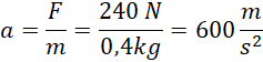 Korzystamy ze wzoru na przyspieszenie wg drugiej zasady dynamiki Newtona.