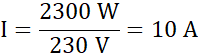 Oblicz natężenie prądu w czajniku o nominalnej mocy 2,3 kW i napięciu nominalnym 2,3 kW.